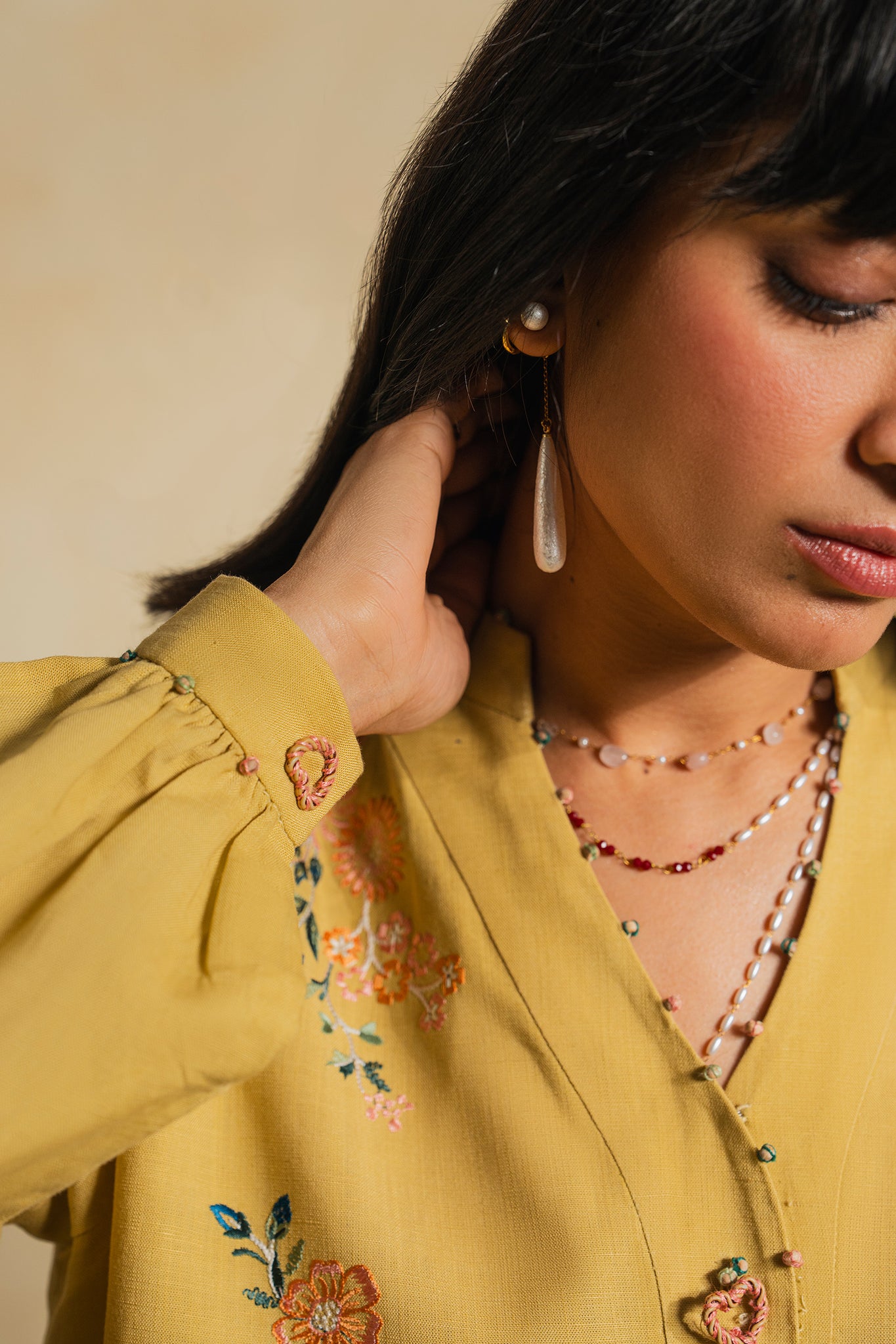 Bathed in a warm, sunlit yellow, this two-piece ensemble is crafted in airy Irish linen, capturing the freshness of new beginnings. Naturally breathable and fluid, the silhouette is relaxed yet refined, offering effortless movement and all-day comfort.
