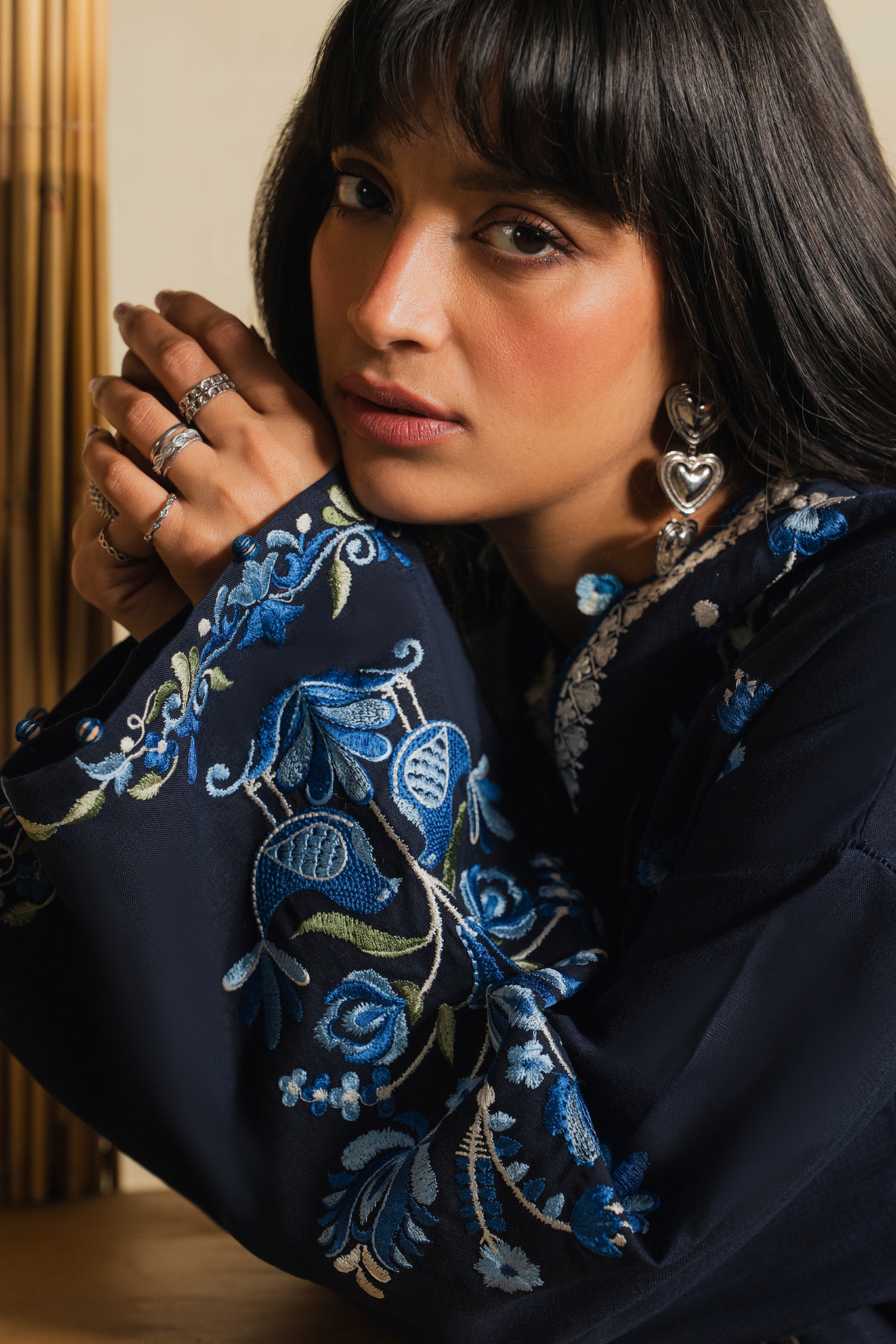 The fluid silhouette drapes like a whisper, with intricate embroidery tracing the neckline and sleeves. Understated yet expressive, Zarqa captures the dreamlike essence of Ramadan luxury — soft, elegant, and timeless.